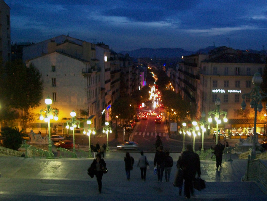 [Escaliers Gare Saint-Charles, Marseille, mercredi 21 novembre 2012, 17h45. Ce paysage de mon enfance, comme un souvenir remanié par un rêve. Retour (Alain François)
