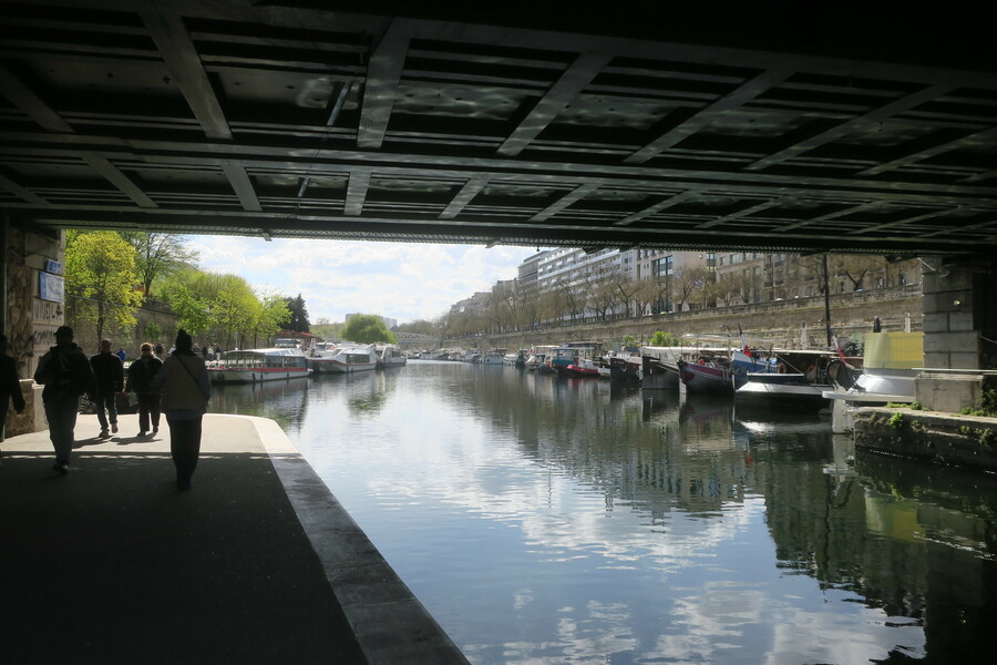 En promenade dans le 13ème, nous débutons notre parcours aux Gobelins, par le Square René Le Gall. Dans une petite portion à l’entrée, un jardin partagé, des jeunes y avancent tête baissée. Ils cherchent des chocolats de Pâques. Leur mère repasse derrière eux pour leur montrer ceux qu’ils ont oublié en chemin. En observant les plantes, les fleurs et les arbres du jardin, nous en trouvons à notre tour, au milieu de l’herbe, en équilibre sur une branche, sous les feuilles des arbustes. Le charme de ce jardin vient de la diversité de ses espaces. Il y a la partie occupée par des bandes de gazon au centre desquelles se dresse un obélisque encadré par quatre gloriettes. Au centre, le sous-bois divisé en bosquets s’ordonne autour de l’allée médiane, plantée de diverses essences qui viennent s’ajouter aux charmes et aux cèdres bleus plantés sur le pourtour du jardin. En avançant dans le jardin, nous croisons deux femmes qui discutent. J’entends l’une d’elles prononcer cette phrase : Je ne suis pas très virtuelle. Le jardin est situé à l’emplacement de l’ancien potager des tapissiers de la Manufacture des Gobelins. Celui-ci se dressait sur une des nombreuses petites îles que la Bièvre entourait autrefois. On l’appelait l’Ile aux Singes, les bateleurs avaient l’habitude d’y laisser leurs singes en toute liberté. L’Ile de la Cité et l’Ile Saint-Louis voisinaient avec l’Ile Louviers et l’Ile Maquerelle. La vallée de la Bièvre était alors un lieu très vivant, dynamique, malgré les odeurs putrides qui s’échappaient de la rivière. Les Parisiens venaient s’encanailler dans les guinguettes, qui s’étaient multipliées après la construction du mur des Fermiers Généraux, car le vin n’y était pas taxé. On y buvait une bière réputée depuis que des ouvriers flamands, venus travailler à la Manufacture des Gobelins, avaient ouvert sur place des brasseries. Traverser l’espace d’une ville c’est le parcourir à travers le palimpseste d’un temps qu’on ne perçoit que certaines strates.
