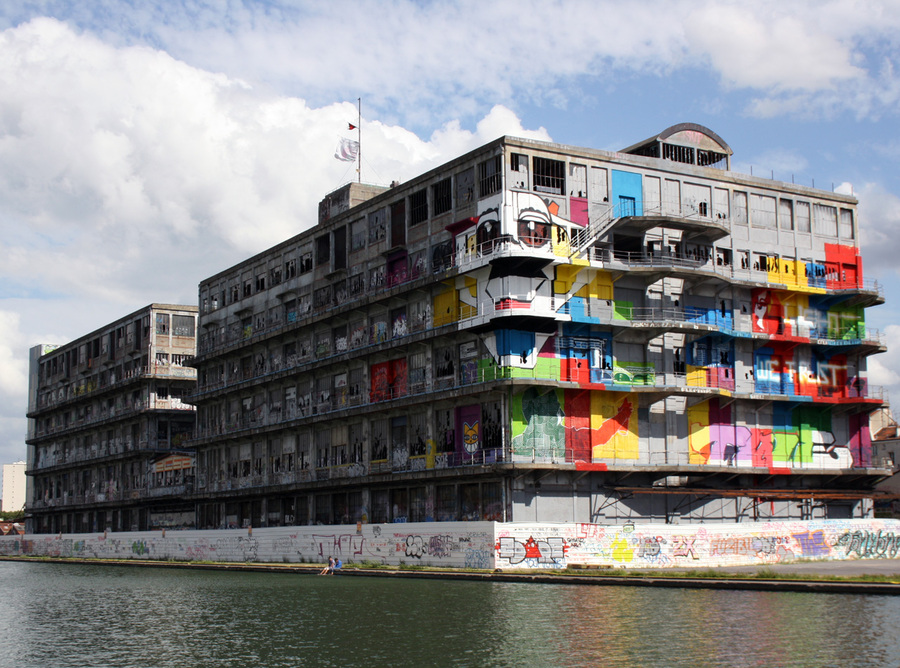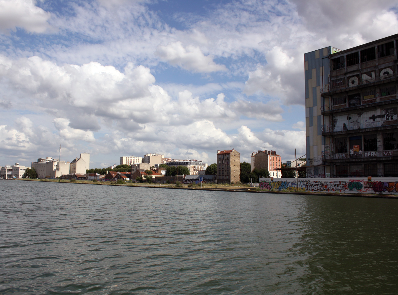 En lisant ce matin l’ensemble des textes de ces vases communicants, j’ai sélectionné une série de phrases dans chacun, que j’ai ensuite mélangée et mixée afin de créer un nouveau texte façon cut-up, afin d’accompagner la série de photographie prise la veille à Pantin, le long du canal de l’Ourcq, sur le Chemin de Halage, autour de l’ancien bâtiment des Magasins généraux des douanes abandonné. La mairie de Pantin a fait détruire le pont qui reliait à cet endroit les deux rives du canal (dommage) et y a un projet immobilier d’envergure, qui prévoit de transformer prochainement le bâtiment en bureaux avec une brasserie au rez-de-chaussée.