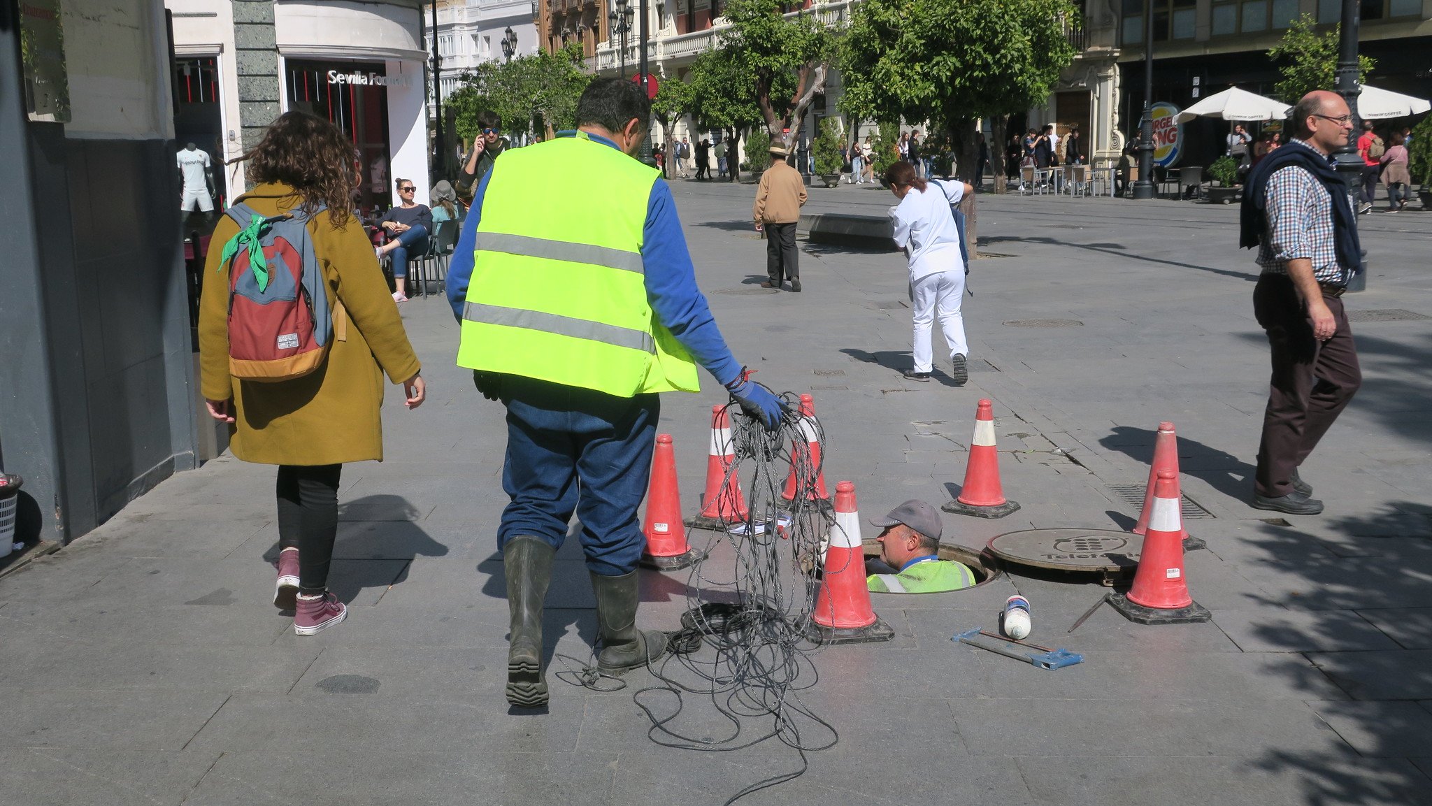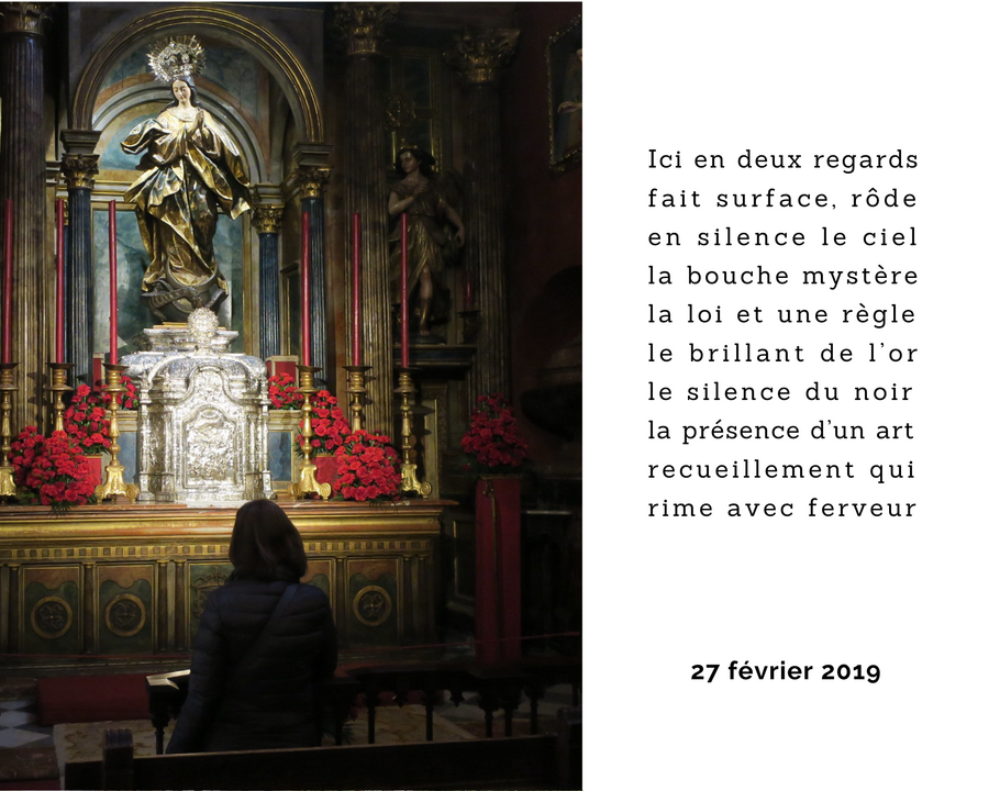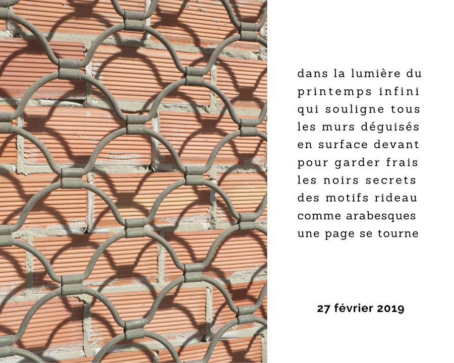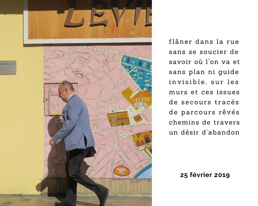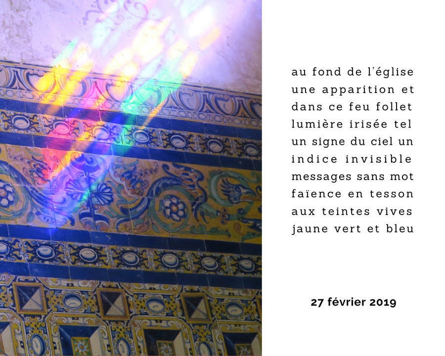 Textes écrits à partir de photographies prises à Séville en février 2019, d’après le principe d’écriture du texte de Michèle Métail, La Ville, de la ville : Décrire une scène urbaine sous la forme d’instantanés poétiques en 10 lignes de 15 lettres, dimensions respectant celles d’une photo (10×15cm).