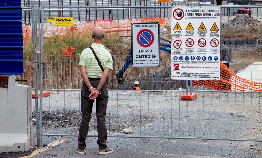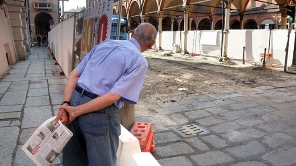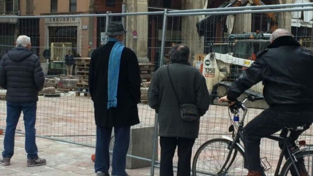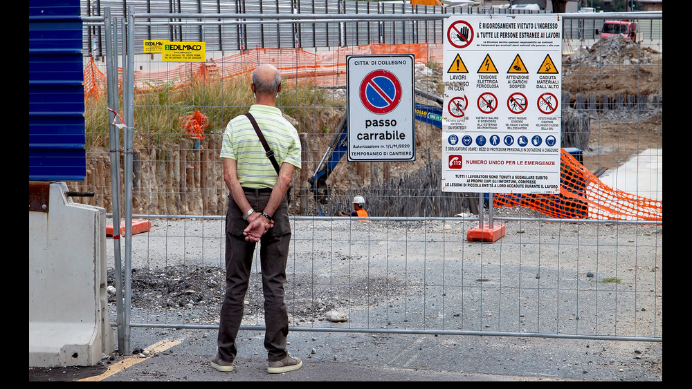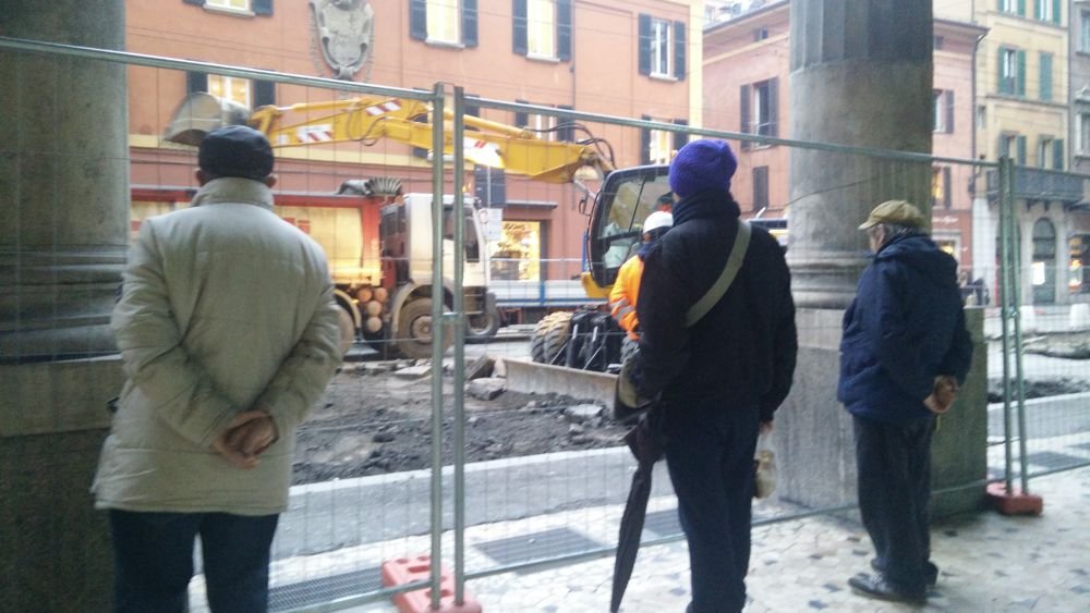 Sur son blog, Danilo Masotti a invité ses lecteurs à lui envoyer des photographies de personnes âgées absorbées dans l’observation des chantiers de leur ville. Parfois seul, souvent en groupe, mais trouvant tous, dans cette activité contemplative et les échanges sur le travail en chantier qui en découlent, un remède à leur ennui.