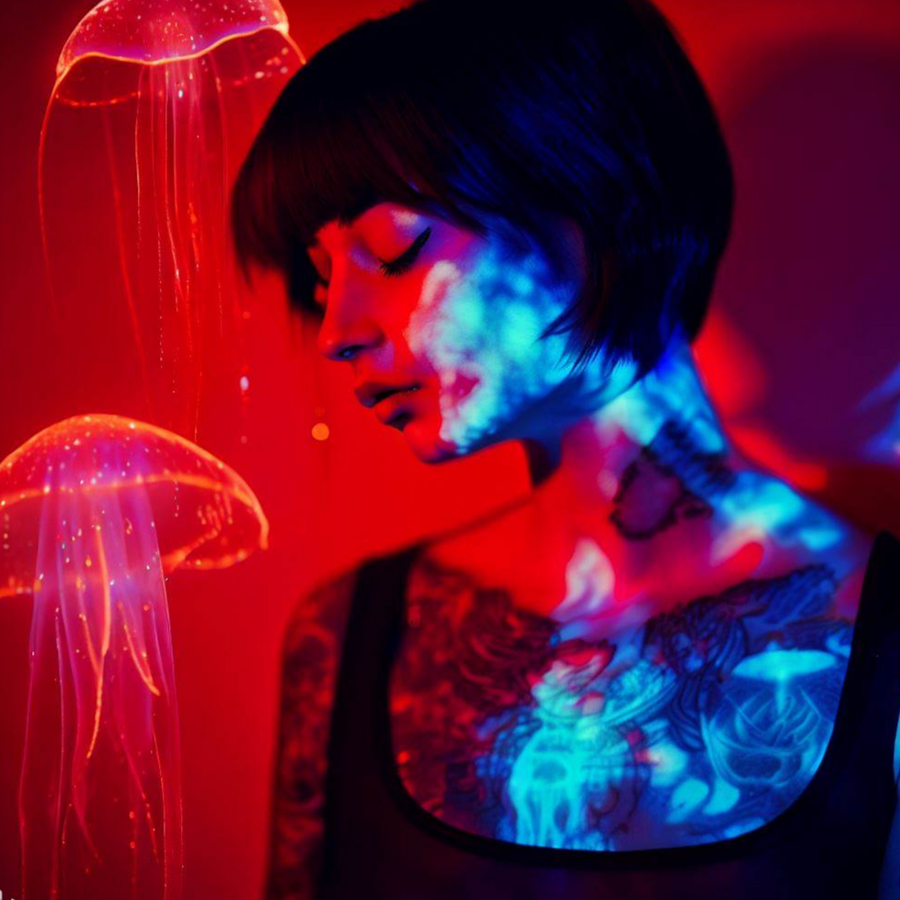 Je caresse l’ombre épaisse des grands arbres de la place. Les feuilles frissonnent dans la chaleur du jour. Je sens le souffle du vent sur ma peau. Les ombres se mêlent, je ne distingue plus les feuilles de leurs ombres. Leur danse sensuelle dessine des motifs chatoyants qui ne se figent pas, sans cesse mouvants. Formes évanescentes d’entrelacs aux motifs enlacés qui rappellent les contours finement brodés du dessin de mes tatouages. Sur ma peau les traces d’anciennes blessures, les coupures, les incisions, les griffures, les piqures, toutes les scarifications passées, les cicatrices causées par les accidents de vélo, les sortie de route en voiture, les piqûres de méduse et les brûlures de la peau qui laissent des traces comme autant de repères. Souvenir d’une chute, d’une blessure, d’un choc. Je ferme les yeux pour ne plus voir ce qui m’entoure, une forme de parenthèse, un sursis, soudain je deviens visible aux yeux des autres, je m’offre à leur regard, je me me dévoile, à nue. Je ferme les yeux pour ne plus me laisser envahir par toutes les images qui m’assaillent habituellement, m’entêtent. Je me replie sur moi pour laisser place aux images intérieures, comme si j’entrais à pas lents dans la pénombre d’une grotte. Je tâtonne les premiers mètres, sans repères. Les sons se perdent dans le vide infini. Je me sers de mes mains tendues pour toucher tout ce qui m’entoure, tenter de me repérer tant bien que mal pour ne pas tomber, avancer au ralenti tout en m’habituant à la pénombre. Les bruits de mes pas, de ma respiration ralentie emplissent le volume d’air intérieur. J’entre dans le sombre. Je ferme les yeux, fais ressurgir toutes les images enfouies, comme au cinéma, dans la pénombre de la salle obscure où j’assiste à la projection d’un film. Et soudain, les yeux fermés, dans cette vulnérabilité, cette disponibilité, je laisse les images m’envahir, m’encercler. Je ne suis plus dans le noir, mais entourée de lumières, de motifs tournoyants, des formes colorées. Ces images recouvrent mon corps. Je m’y projette. Fleurs, papillons, oiseaux. Arbres, astres, insectes. Empourpré des reflets du matin, mon visage est plus rose que le ciel. Je ressens devant moi ce désir de vivre qui renaît chaque fois que je prends de nouveau conscience de la beauté et du bonheur. Je suis reconnaissante envers les gens qui me rendent heureuse. Mais avec elle c’est différent. À mes côtés, elle m’accompagne. J’aime la sentir proche de moi. Certaines mimiques en elle m’agacent autant qu’ils me séduisent. Dès qu’elle s’éloigne, ces signes insupportables se mettent à me manquer cruellement. Je ne respire plus de la même façon quand elle est loin de moi. J’aime la regarder à la dérobée, lorsqu’elle est concentrée. Les yeux dans le vide. Dans l’écoute d’une musique ou d’une réflexion intérieure. Elle s’offre à moi dans cette absence. Cette disponibilité sans but. Je décèle comme un éclat phosphorescent dans ses yeux clairs. Je souris entre des balbutiements et des espérances. J’observe son désir dans ses yeux. Je ne cherche pas de nouveaux paysages, je voudrais juste les voir autrement, trouver un nouveau regard. Je n’arrive pas à changer comme je le souhaiterais les choses suivant mon désir. Elle me répète que je dois être plus patiente. Peu à peu mon désir change. Mon corps menace mon esprit en permanence. Je ne sais plus comment réagir. Je suis trop impatiente de sortir de moi-même. Elle m’attend tendrement. Je contourne la méticuleuse réalisation de ses désirs. Elle se dédouble en moi. Je sens qu’elle n’avouera jamais la vérité. Une heure n’est pas qu’une heure, c’est une promesse de bonheur, un commencement de beauté. Des repos d’intervalle, et des sursauts inespérés. Les choses éclatantes qu’on ne fait généralement que par à-coups. Je me remémore ma jeunesse s’écouler, s’effeuiller lentement comme une triste couronne.